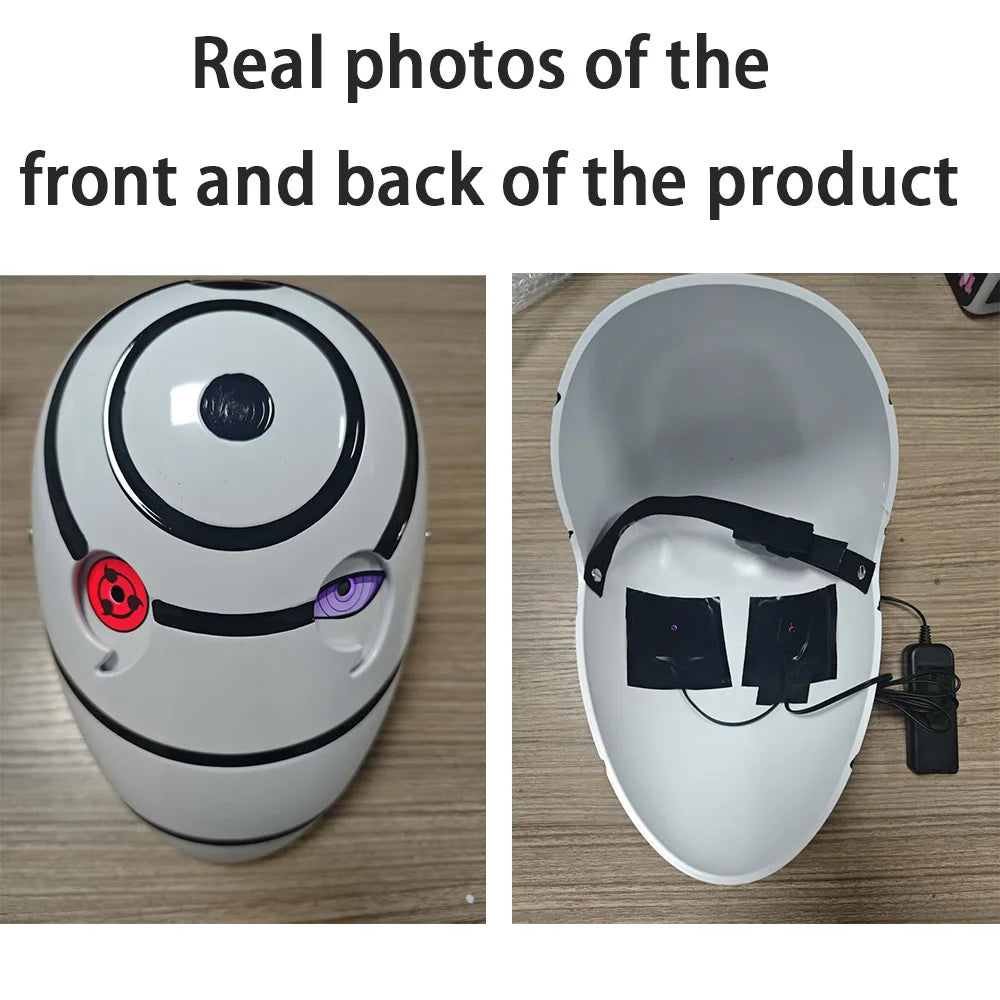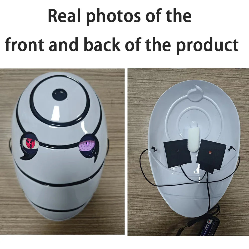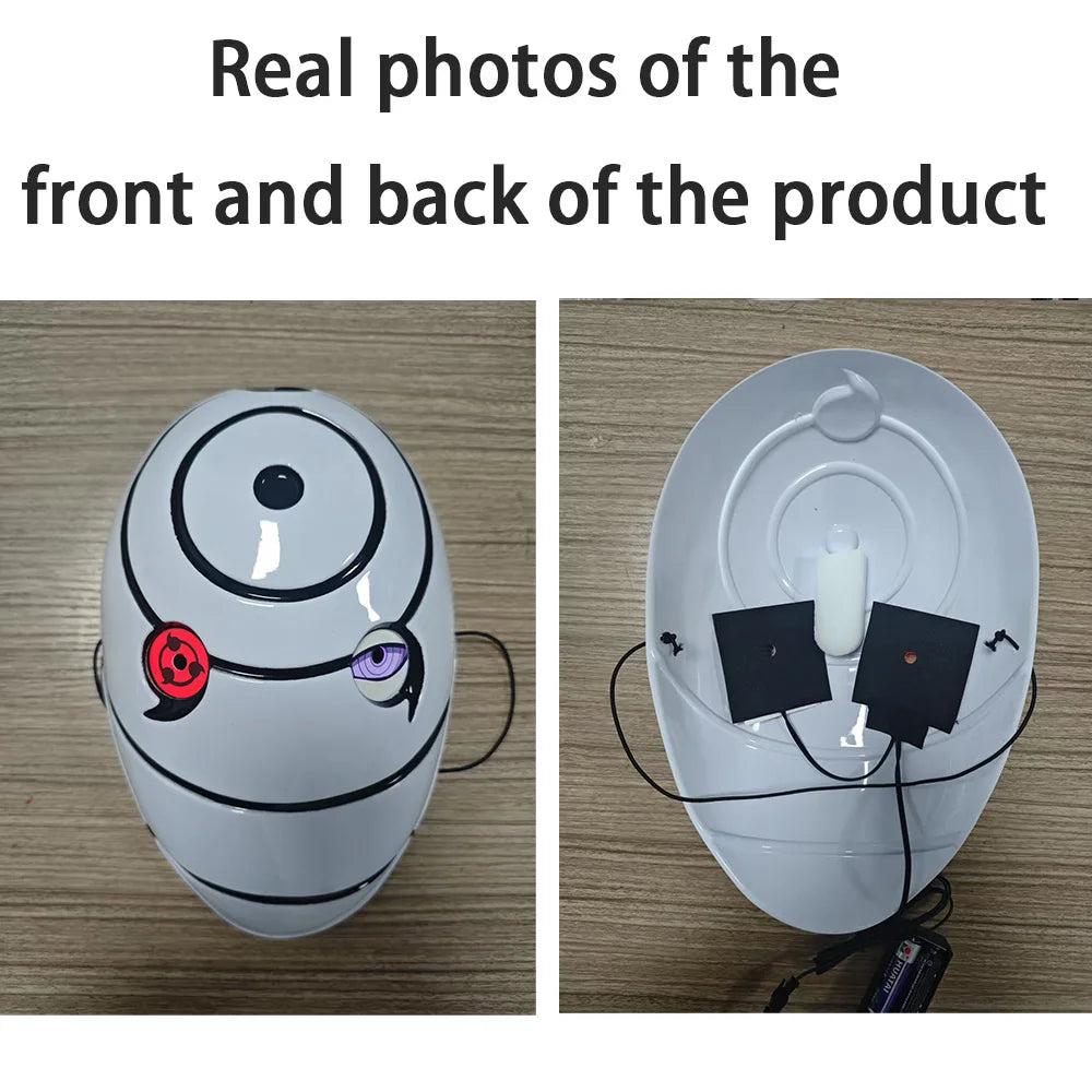 Akatsuki Tobi Uchiha Mask with LED Red Sharingan Eyes Glowing Full Face Cosplay Prop for Halloween Anime Convention Party