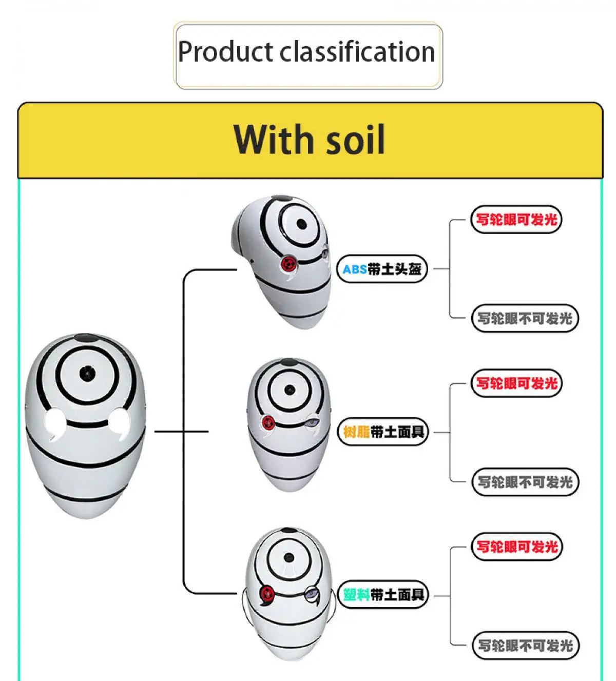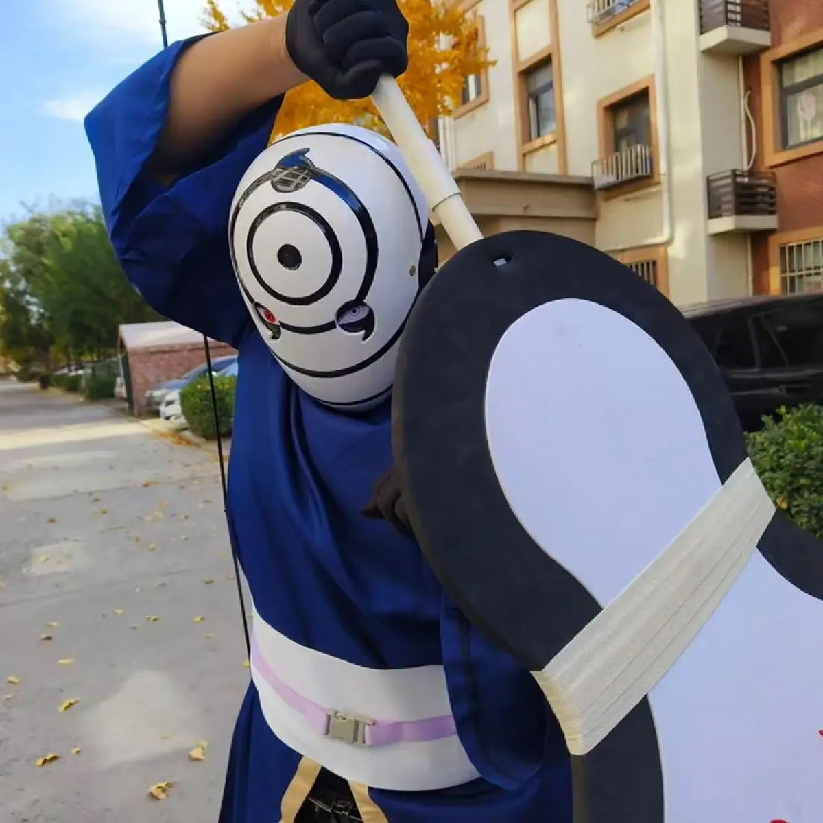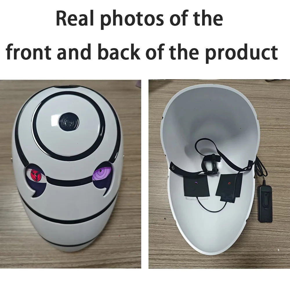 Akatsuki Tobi Uchiha Mask with LED Red Sharingan Eyes Glowing Full Face Cosplay Prop for Halloween Anime Convention Party