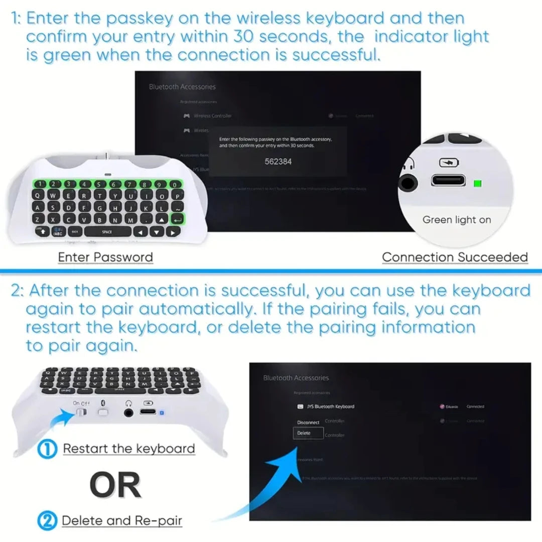 For PS5 Wireless Controller Keyboard Wireless 3.0 Mini Portable Gamepad Chatpad With Built-in Speaker & 3.5MM Audio Jack For Pla